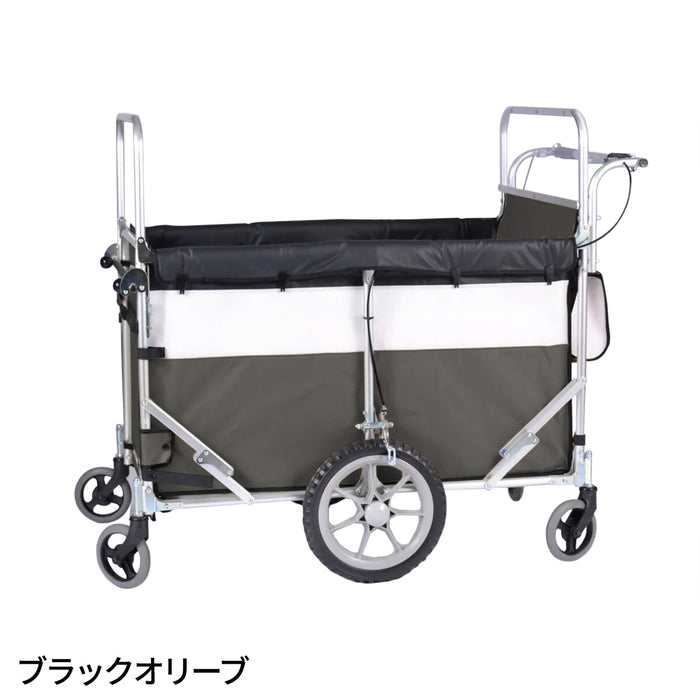 避難車としても使えるように、防炎生地とノーパンクタイヤを標準装備。